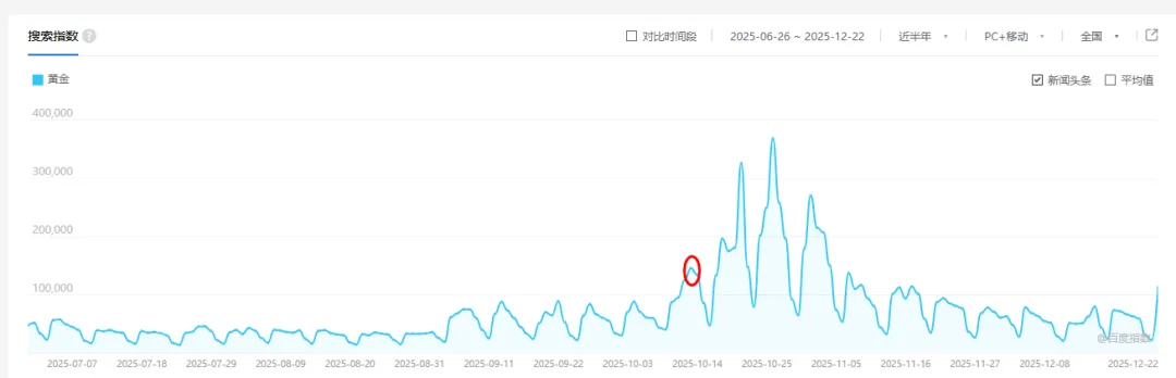 看百度指数,情绪发酵到顶点的时候,黄金已经到头了