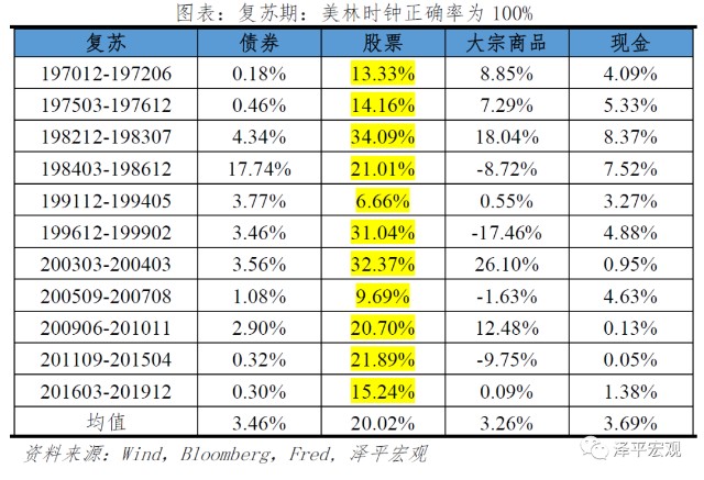 2)在11个复苏期中,所有阶段股票收益率均最高。