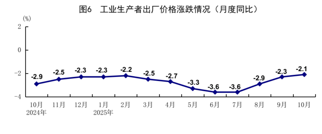 工业生产者价格(PPI)的降幅也缩小了。【制造业继续拉胯】