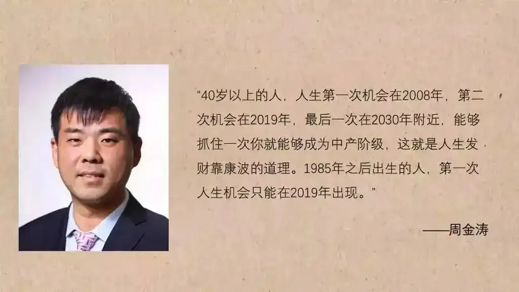 "人生发财靠康波",这句由中信建投原首席经济学家周金涛提出的论断,至今仍是中国投资界最具号召力的口号。2016 年冬,年仅 44 岁的周金涛因胰腺癌离世,留下了未竟的 "涛动周期论" 和那句著名的 "四年之约"(2020 年再聚南开校友会)。